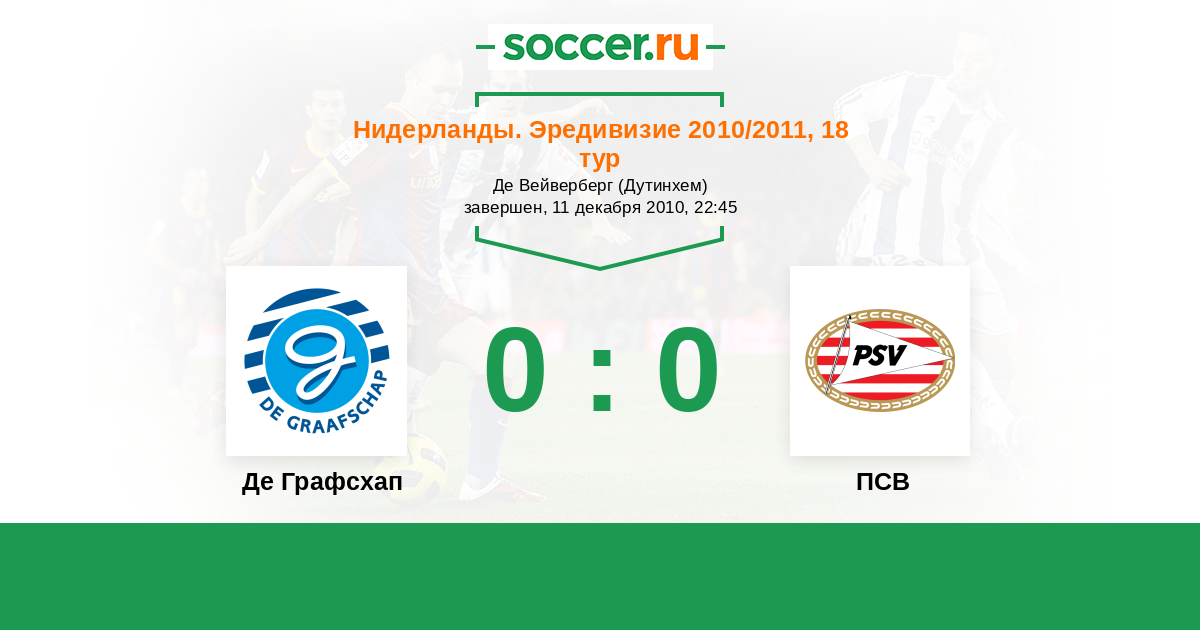 Нидерланды. Эредивизи 14.08.2010 ПСВ Логотип футбольный клуб ПСВ (Эйндховен) 6:0 Логотип футбольный клуб Де Графсхап (Дутинхем) Де Графсхап