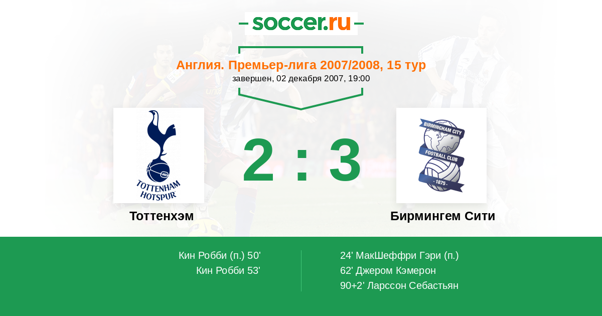 Протокол матча Тоттенхэм против Бирмингем Сити