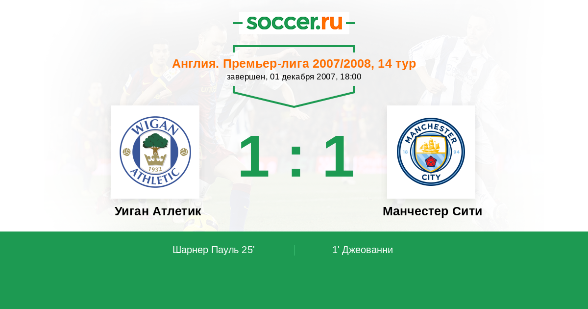 Протокол матча Уиган Атлетик против Манчестер Сити