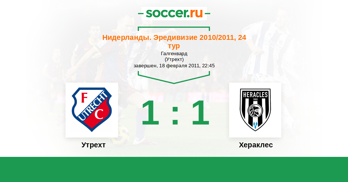 Нидерланды. Эредивизи 28.11.2010 Хераклес Логотип футбольный клуб Хераклес (Алмело) 2:1 Логотип футбольный клуб Утрехт Утрехт