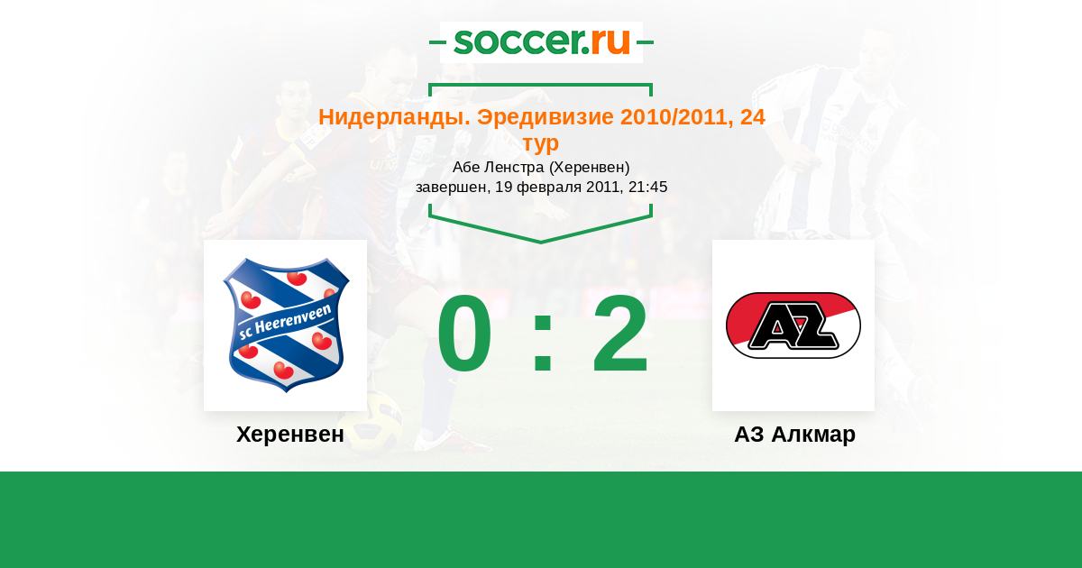 Нидерланды. Эредивизи 04.12.2011 Херенвен Логотип футбольный клуб Херенвен 5:1 Логотип футбольный клуб АЗ Алкмар АЗ Алкмар