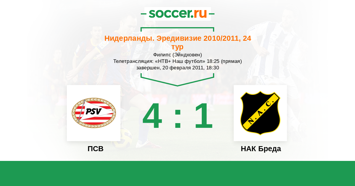 Нидерланды. Эредивизи 10.12.2011 ПСВ Логотип футбольный клуб ПСВ (Эйндховен) 1:0 Логотип футбольный клуб НАК Бреда НАК Бреда