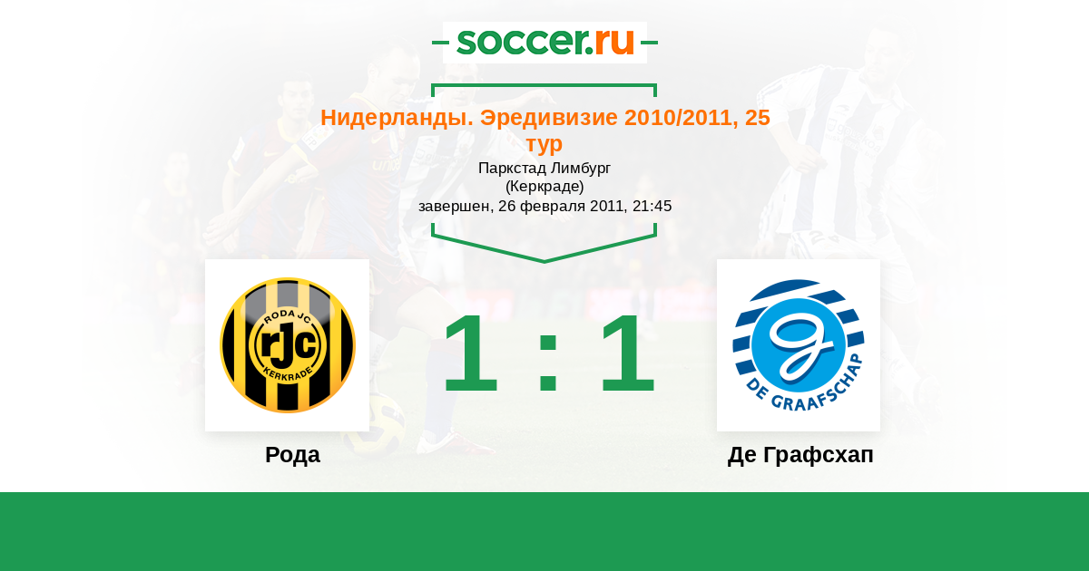 Нидерланды. Эредивизи 25.02.2012 Рода Логотип футбольный клуб Рода (Керкраде) 0:2 Логотип футбольный клуб Де Графсхап (Дутинхем) Де Графсхап