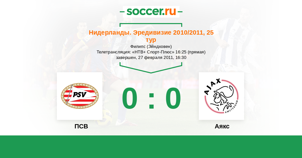 Протокол матча ПСВ против Аякс