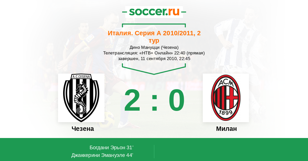 Протокол матча Чезена против Милан