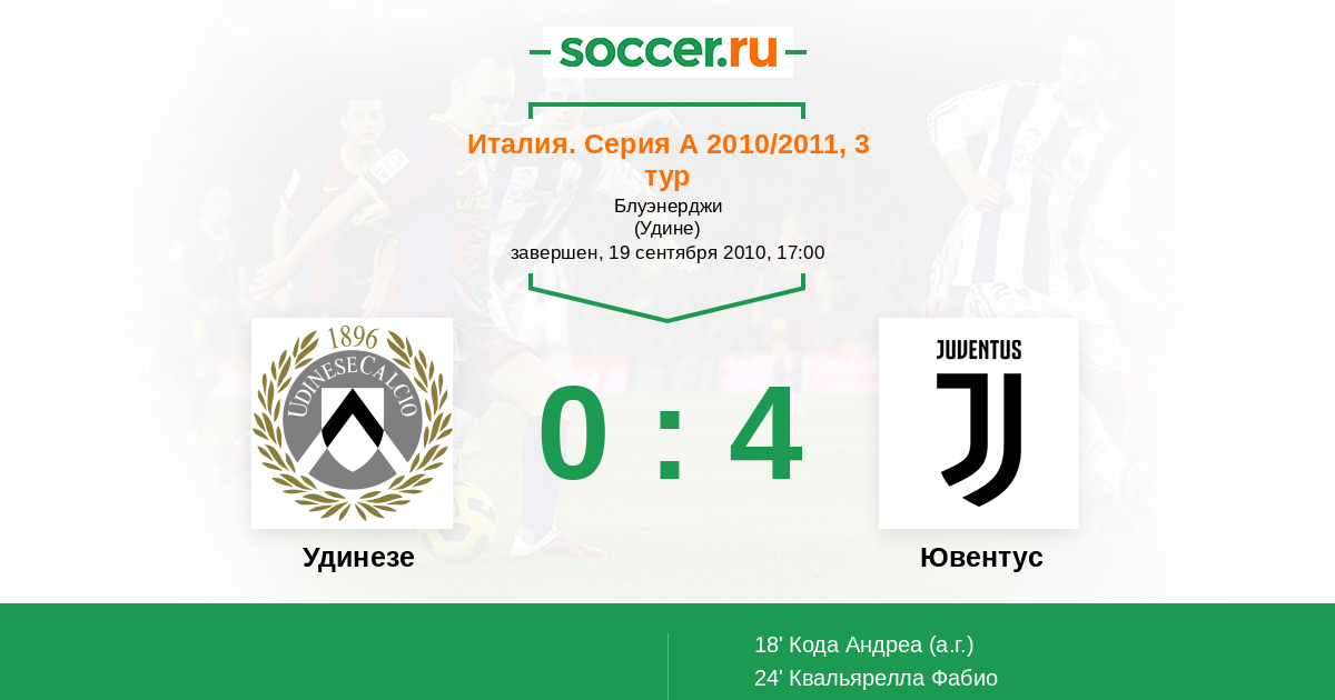 Протокол матча Удинезе против Ювентус