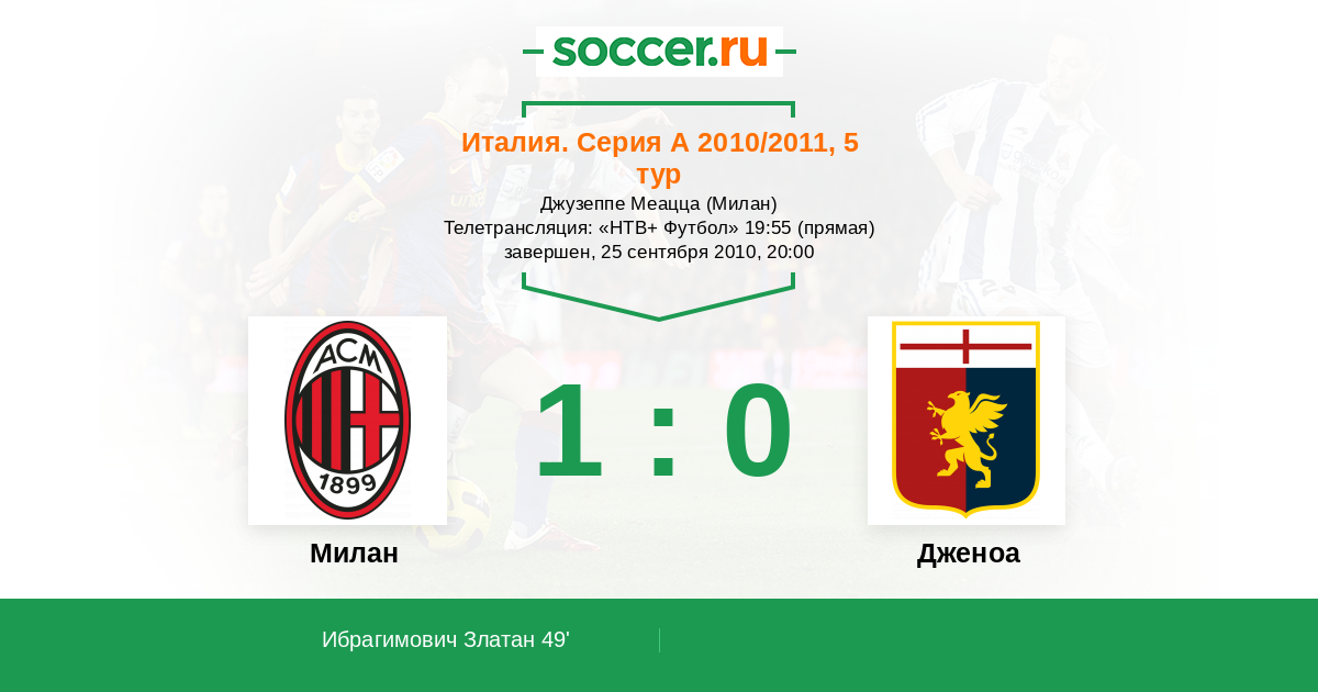 49' (1:0) Ибрагимович Златан (11) (Пирло Андреа (21))