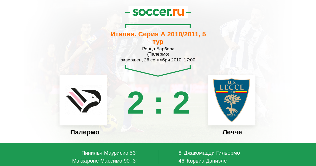 Протокол матча Палермо против Лечче