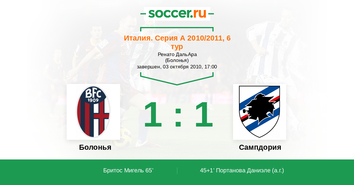 Протокол матча Болонья против Сампдория