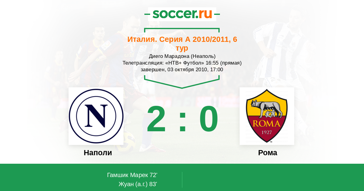 72' (1:0) Гамшик Марек (17) (Доссена Андреа (8))