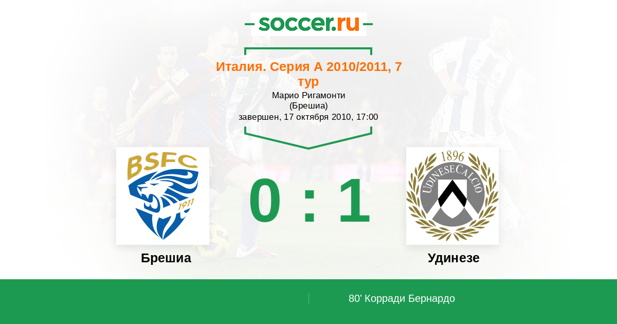 Протокол матча Брешиа против Удинезе