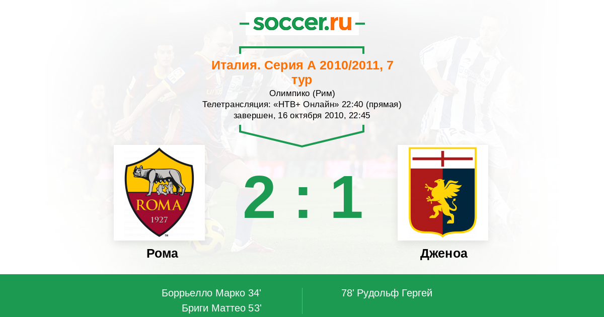 Протокол матча Рома против Дженоа