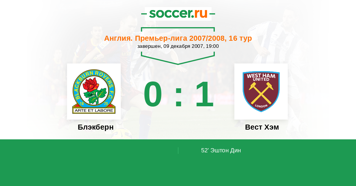 Протокол матча Блэкберн против Вест Хэм