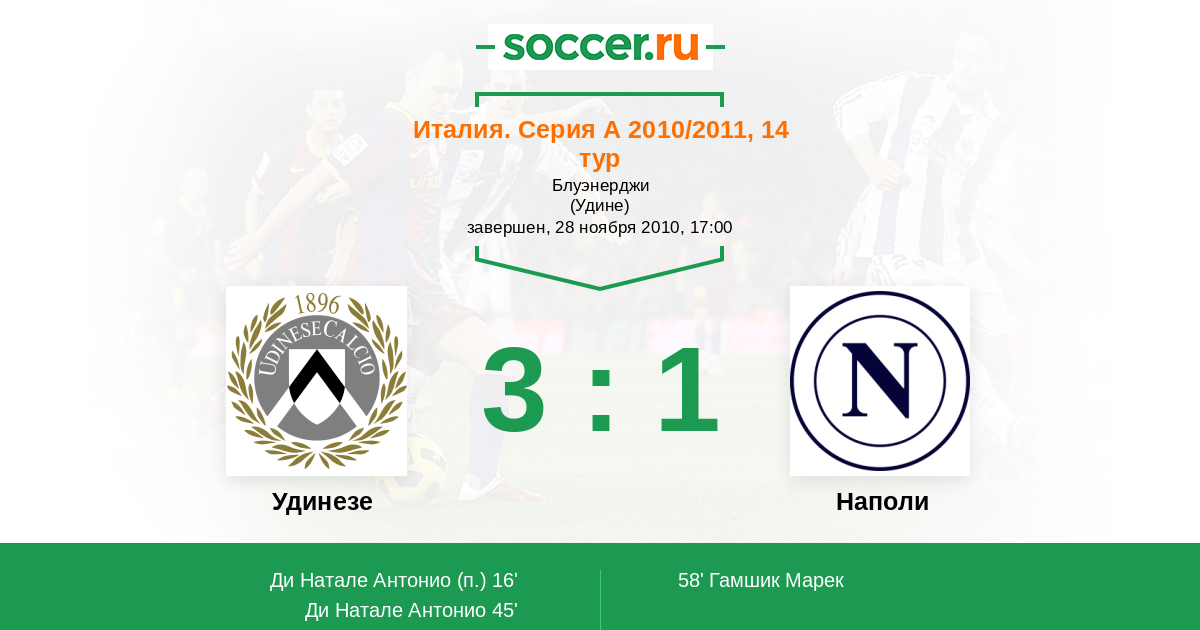 58' (3:1) Гамшик Марек (17) (Пациенца Микеле (5))