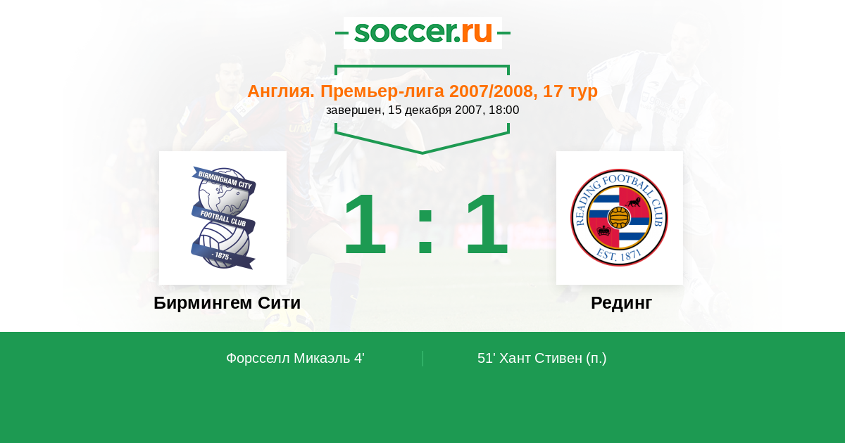 Протокол матча Бирмингем Сити против Рединг