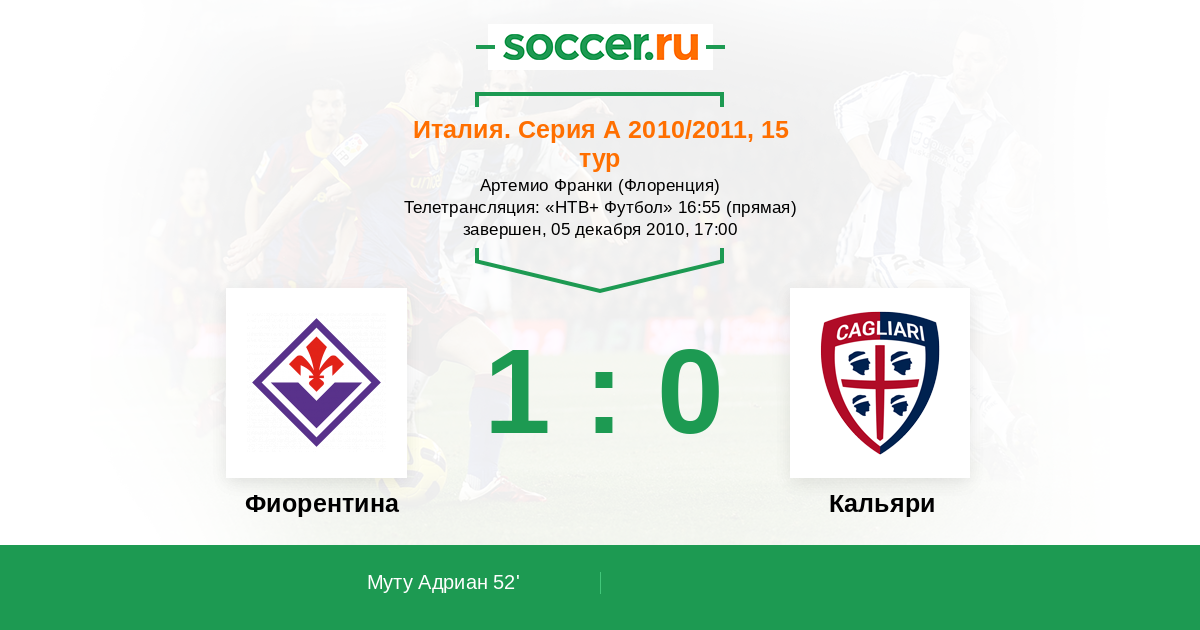 Протокол матча Фиорентина против Кальяри