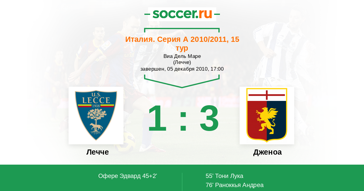 Протокол матча Лечче против Дженоа