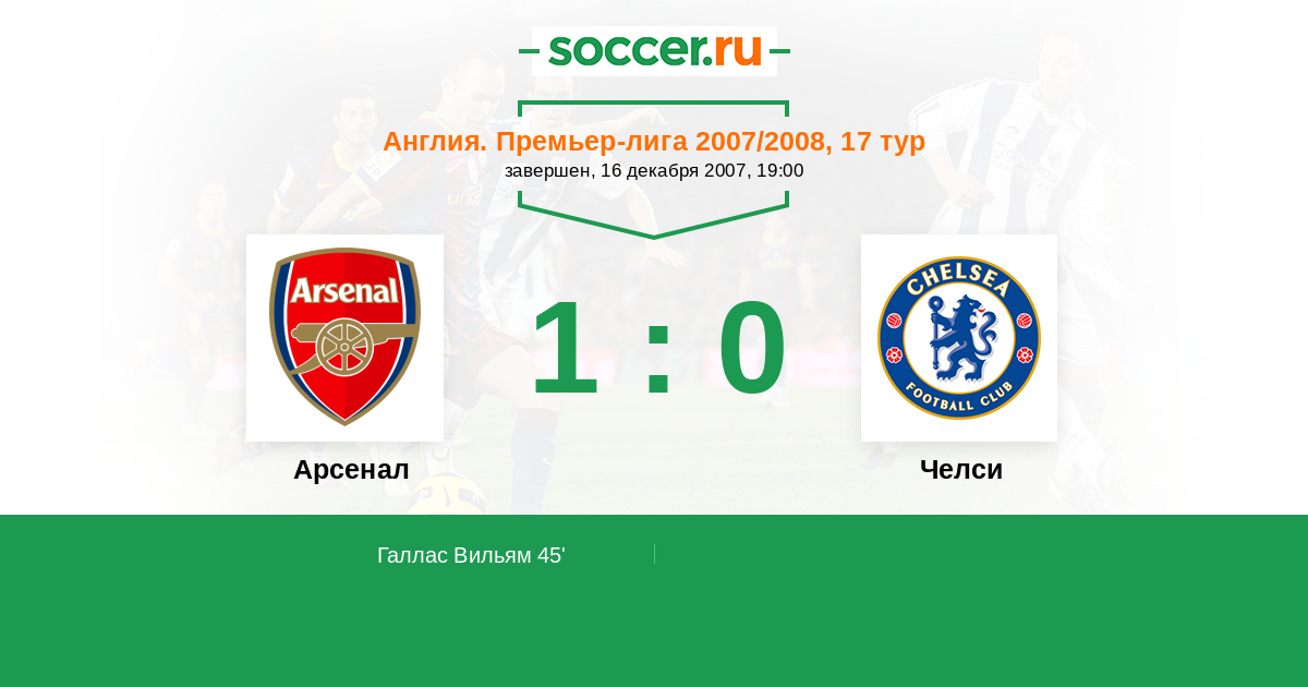 Протокол матча Арсенал против Челси