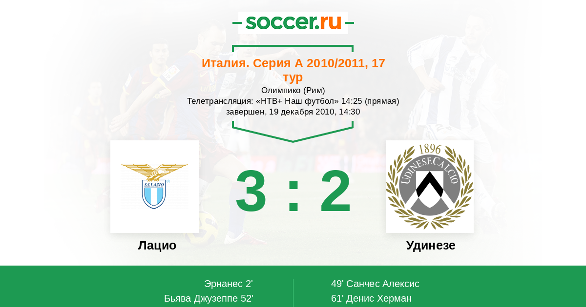 Протокол матча Лацио против Удинезе