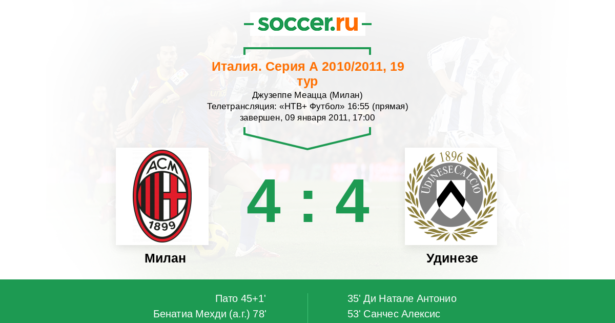 45+1' (1:1) Пато (7) (Ибрагимович Златан (11))