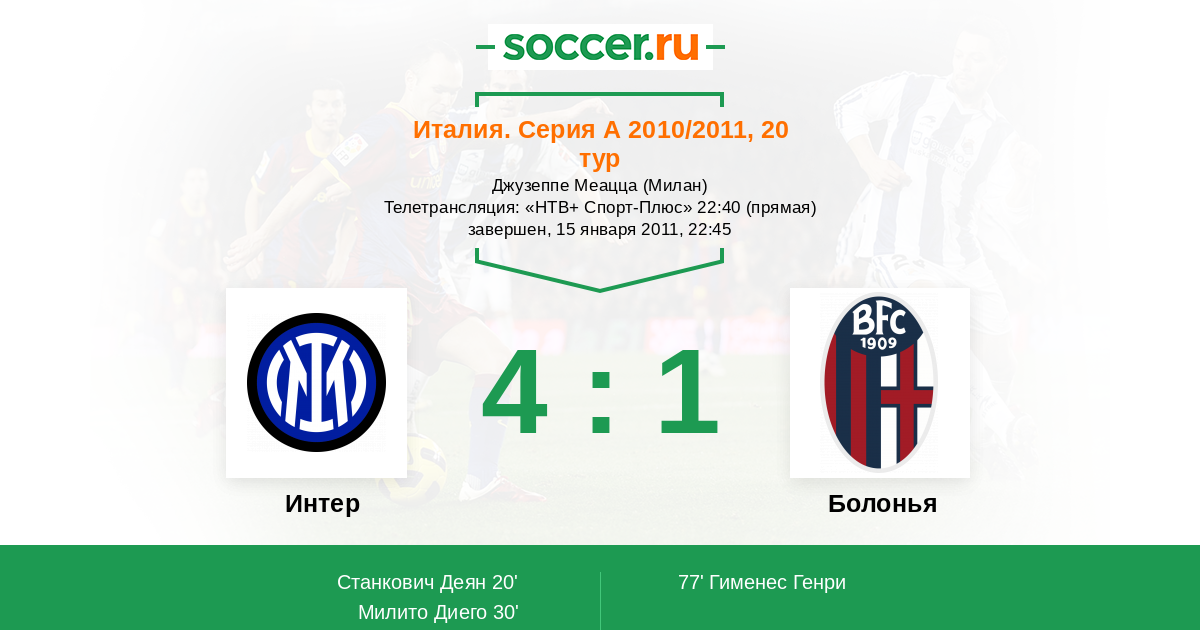 20' (1:0) Станкович Деян (5) (Это'О Самуэль (9))