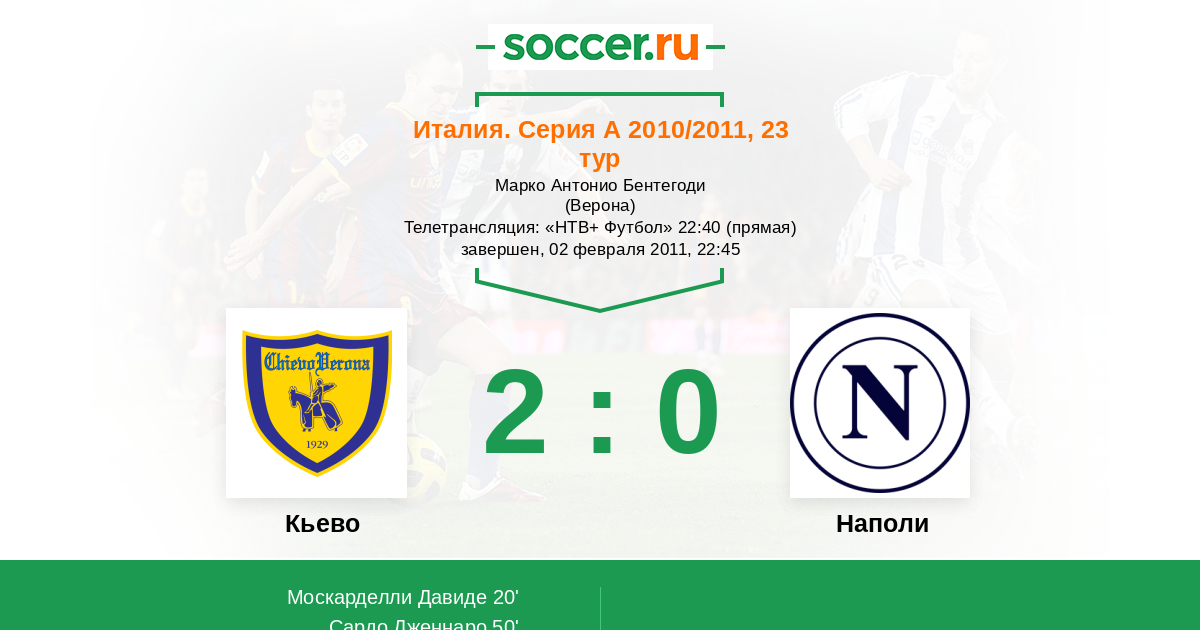 Протокол матча Кьево против Наполи