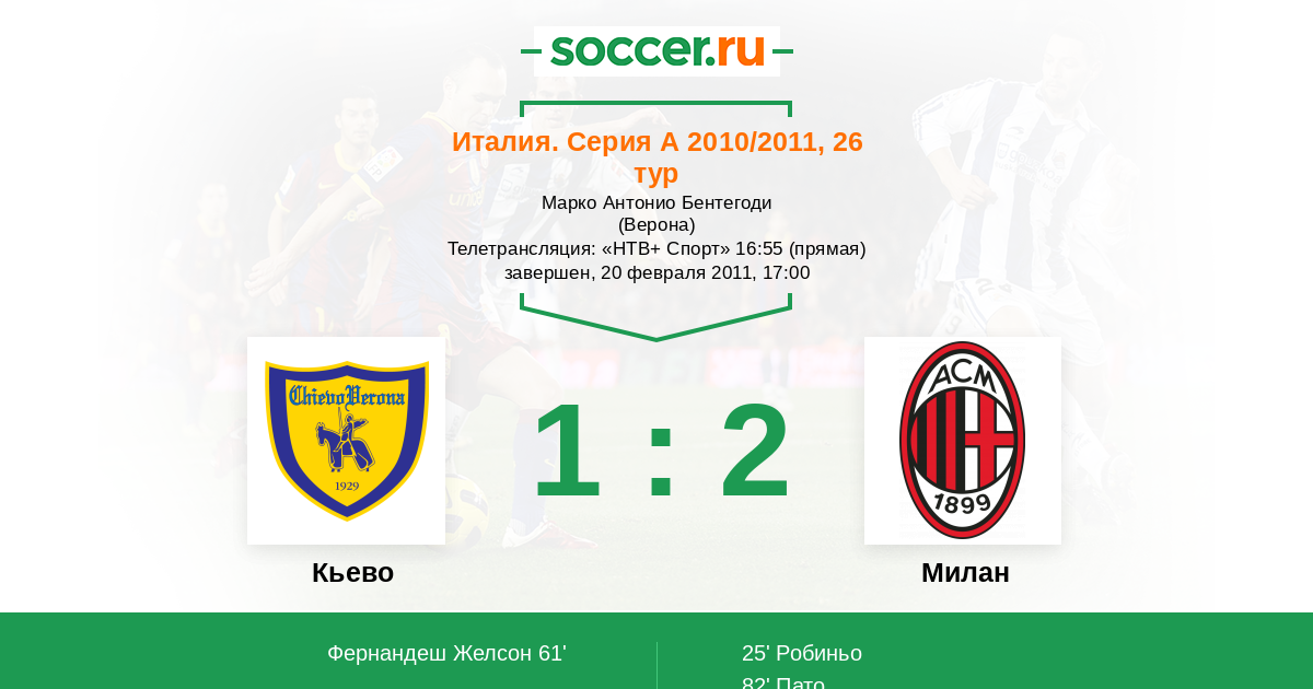 Протокол матча Кьево против Милан