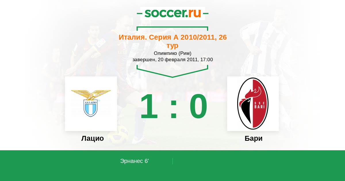 Протокол матча Лацио против Бари
