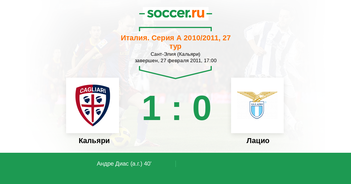 Протокол матча Кальяри против Лацио