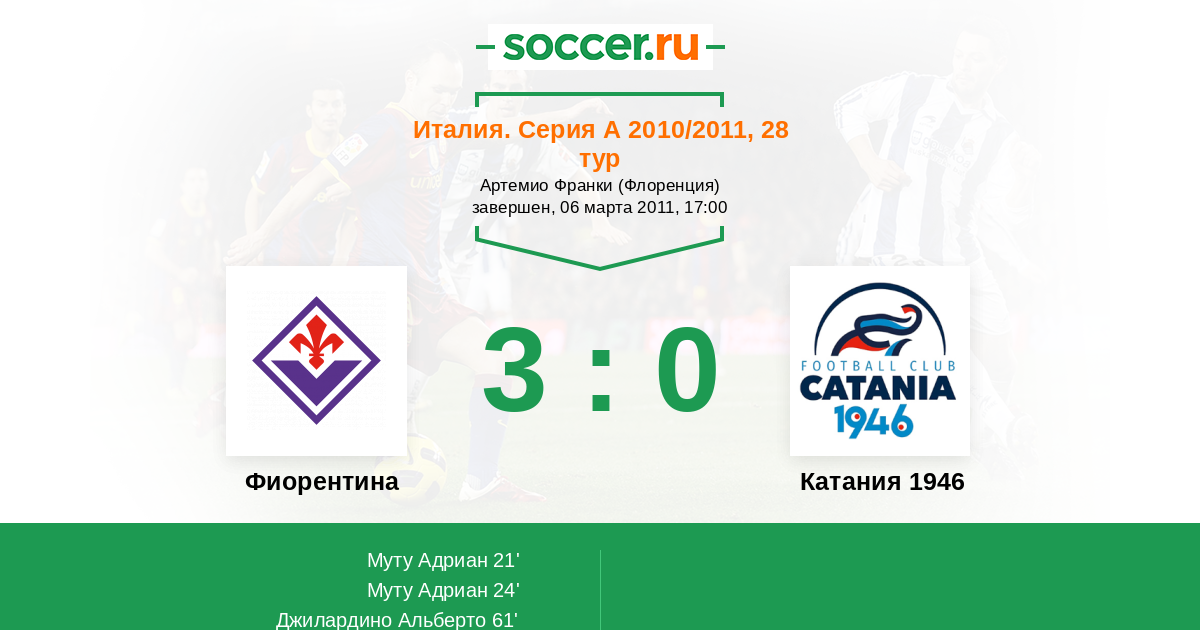 Протокол матча Фиорентина против Катания 1946