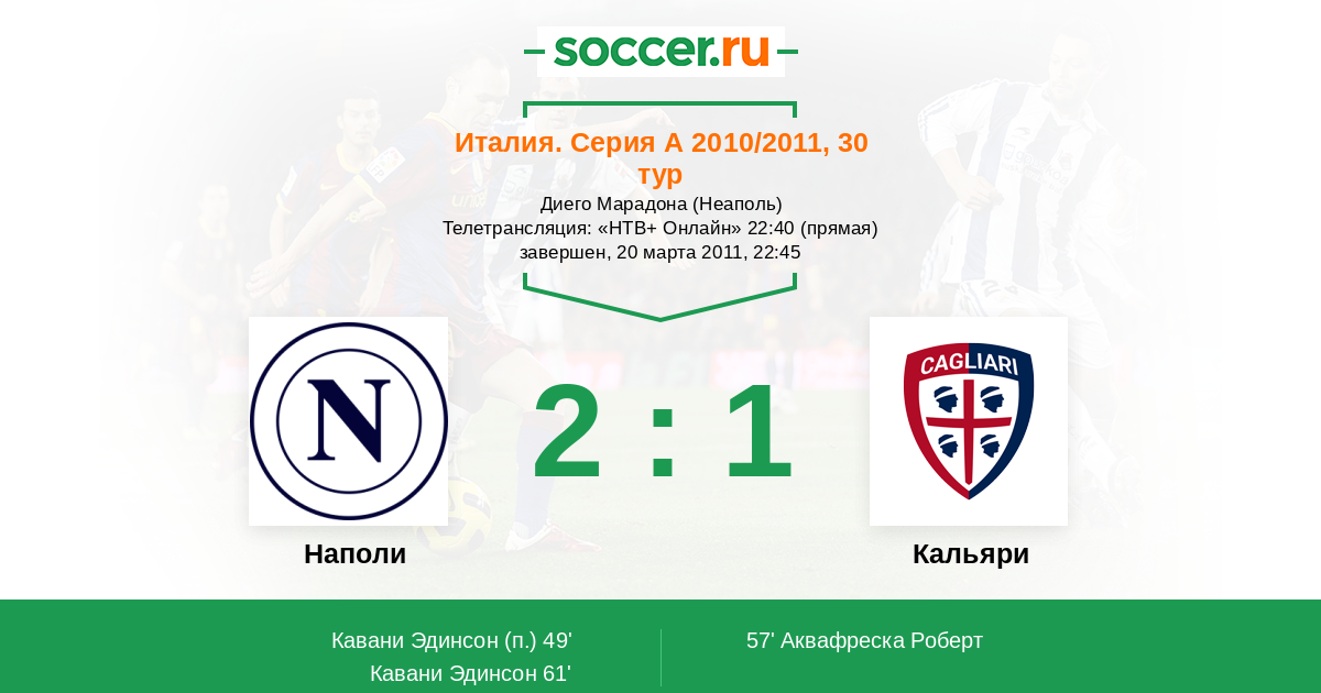 Протокол матча Наполи против Кальяри