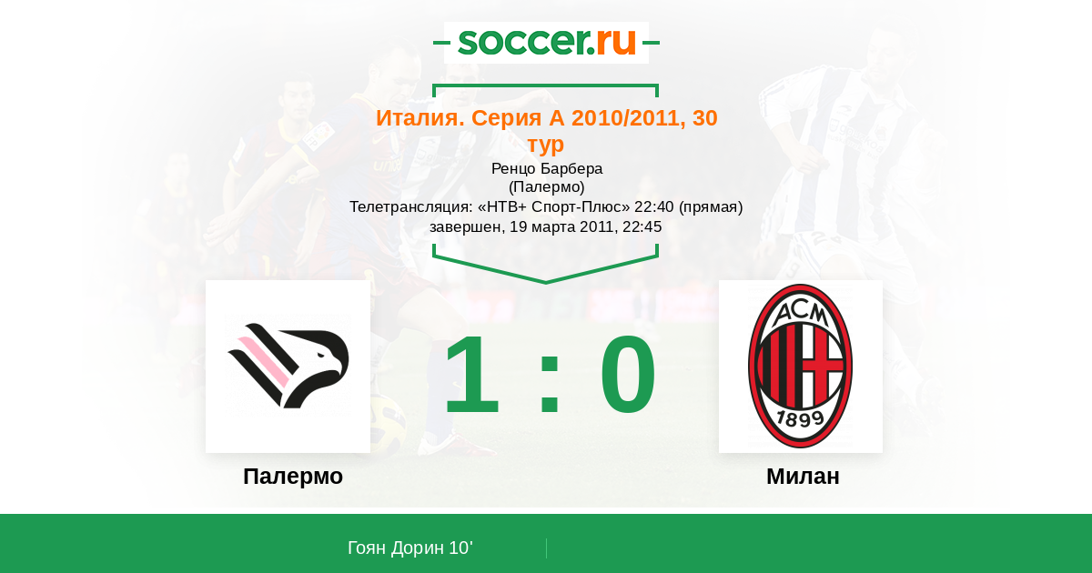 Протокол матча Палермо против Милан