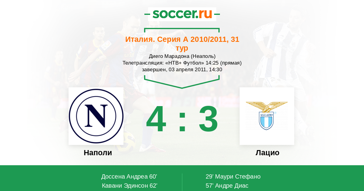 62' (2:2) Кавани Эдинсон (7) (Маджо Кристиан (11))