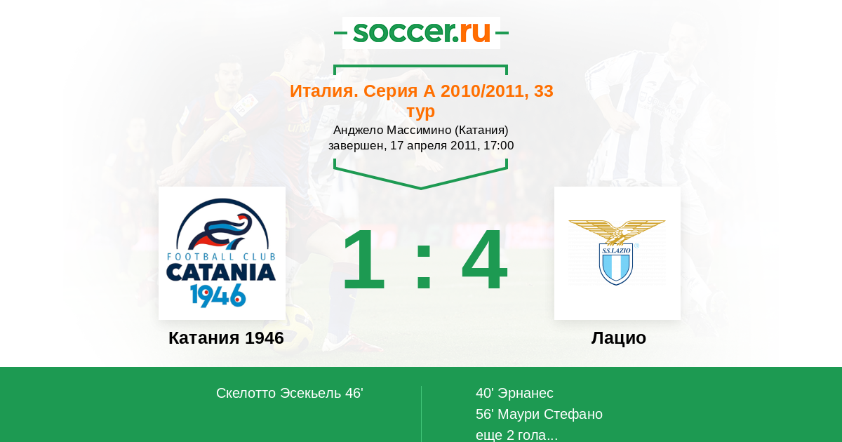 Протокол матча Катания 1946 против Лацио