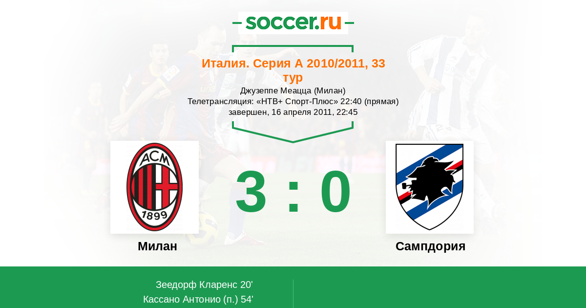 Протокол матча Милан против Сампдория