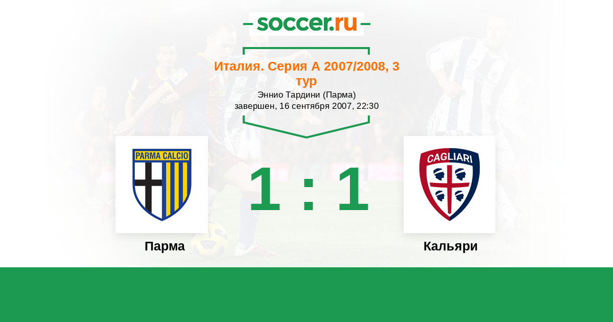 Италия. Серия А 27.09.2009 Парма Логотип футбольный клуб Парма 0:2 Логотип футбольный клуб Кальяри Кальяри