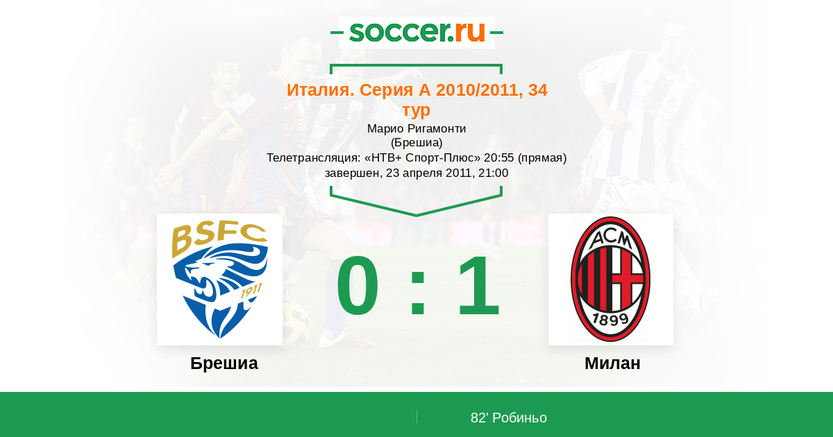 Протокол матча Брешиа против Милан
