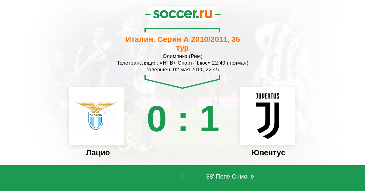 Протокол матча Лацио против Ювентус