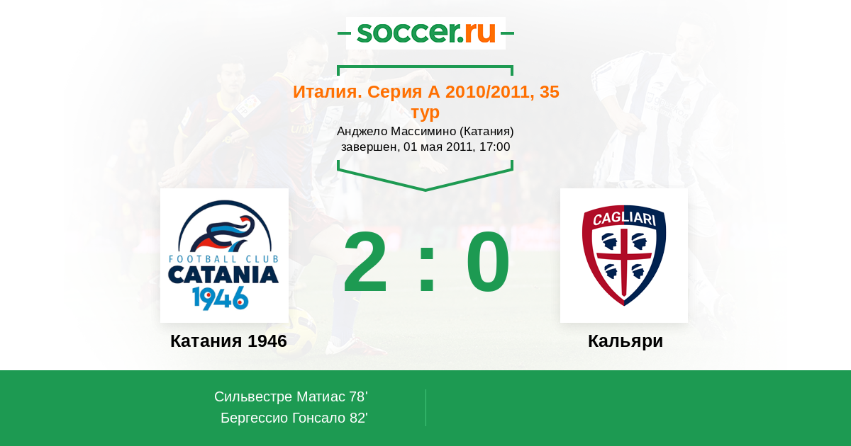 Протокол матча Катания 1946 против Кальяри