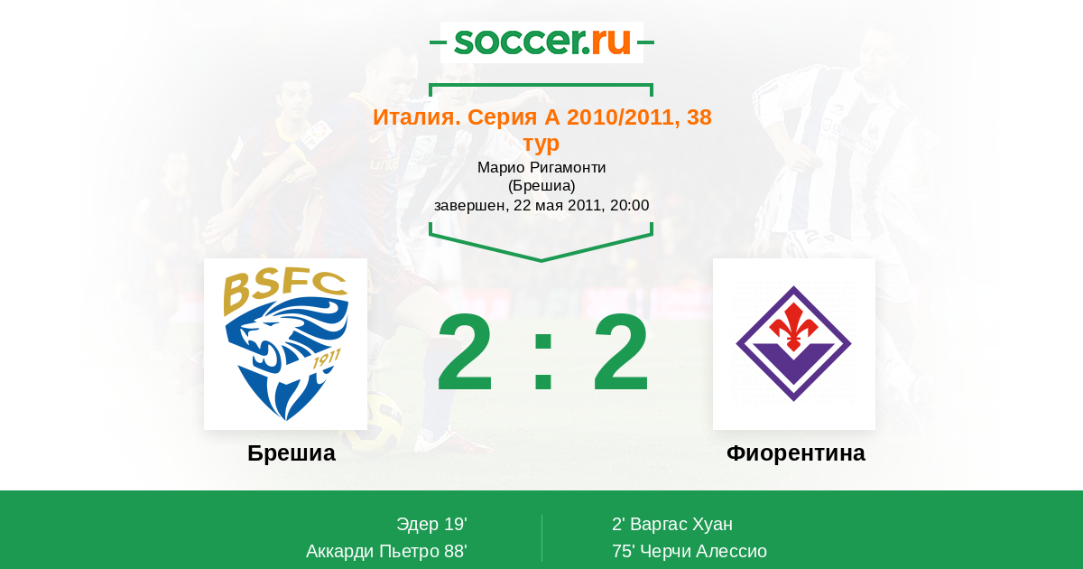 Протокол матча Брешиа против Фиорентина