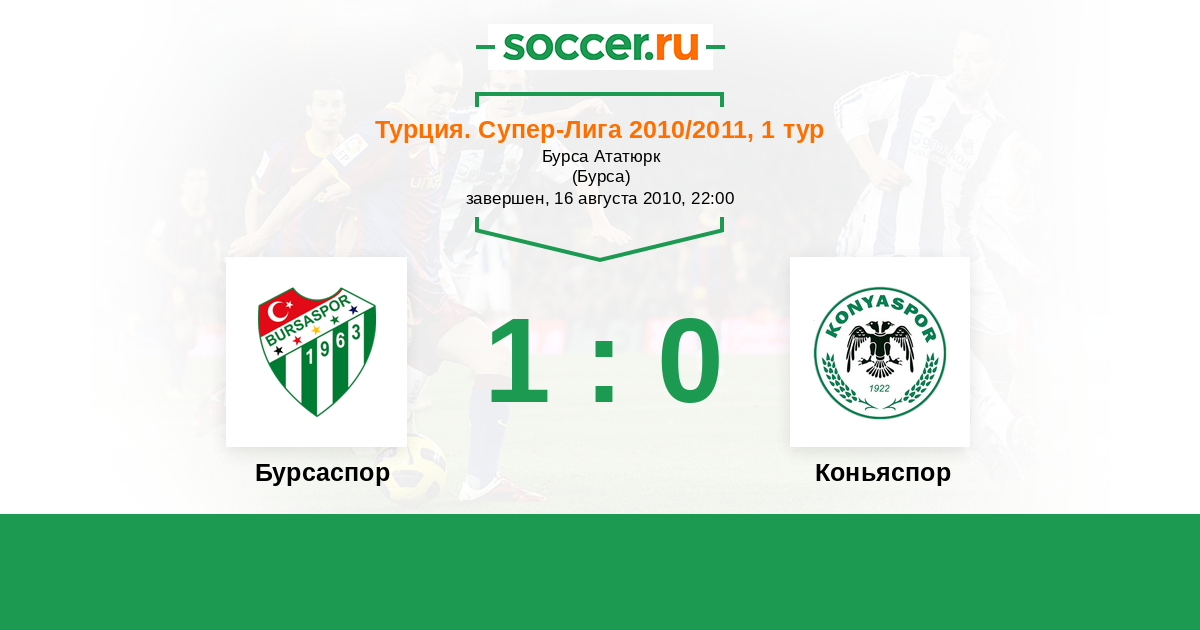 Турция. Суперлига 13.10.2006 Коньяспор Логотип футбольный клуб Коньяспор 1:0 Логотип футбольный клуб Бурсаспор Бурсаспор