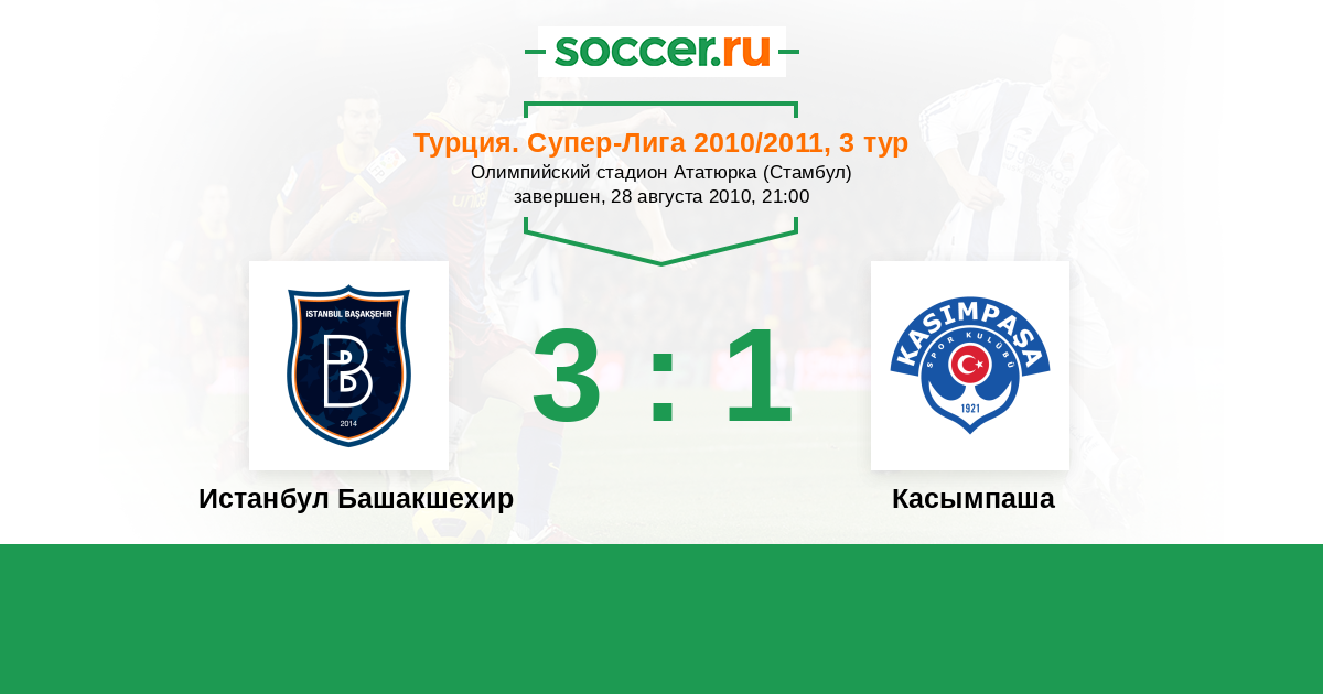 Турция. Кубок 03.03.2011 Касымпаша Логотип футбольный клуб Касымпаша (Стамбул) 0:0 Логотип футбольный клуб Истанбул Башакшехир (Стамбул) Истанбул Башакшехир