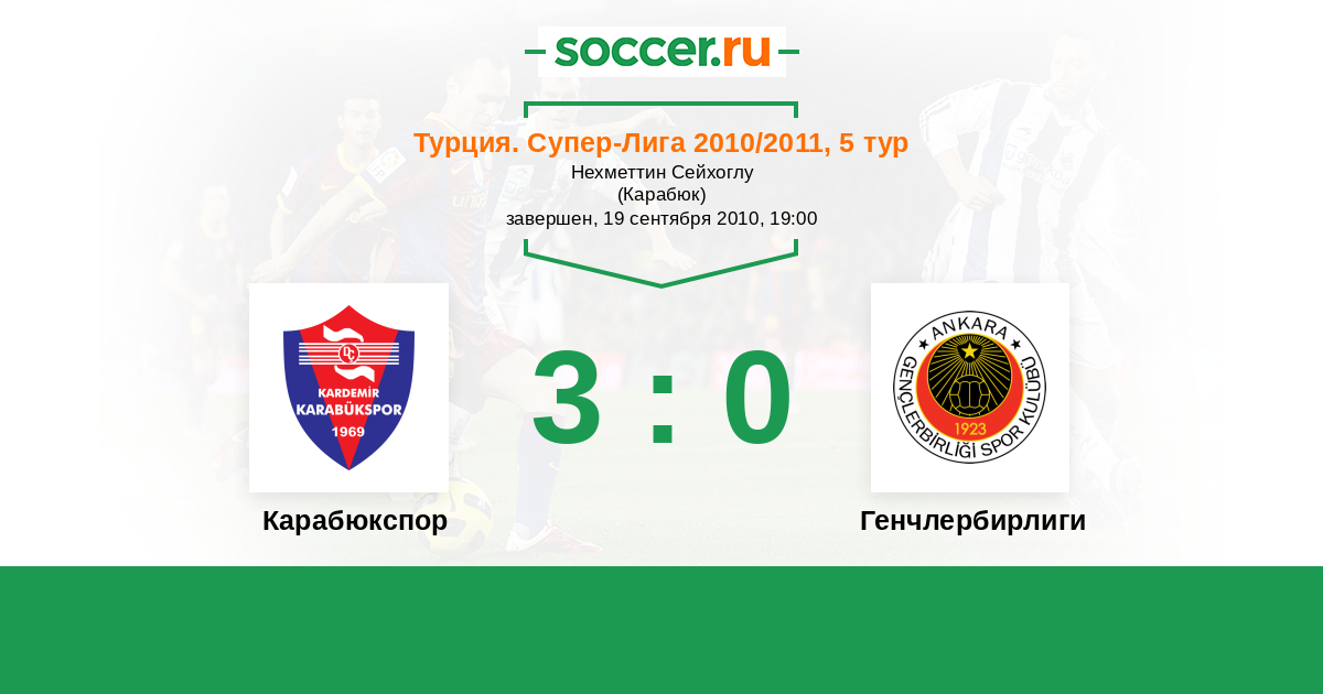 Турция. Суперлига 17.09.2011 Генчлербирлиги Логотип футбольный клуб Генчлербирлиги (Анкара) 2:1 Логотип футбольный клуб Карабюкспор Карабюкспор