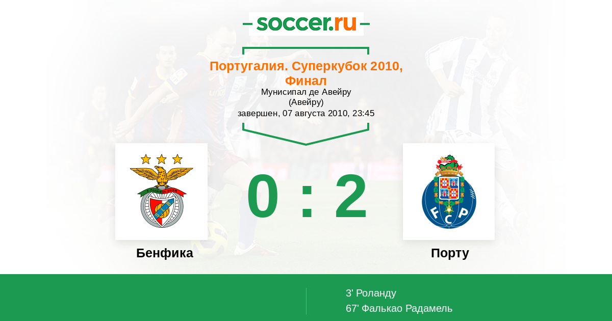 Протокол матча Бенфика против Порту