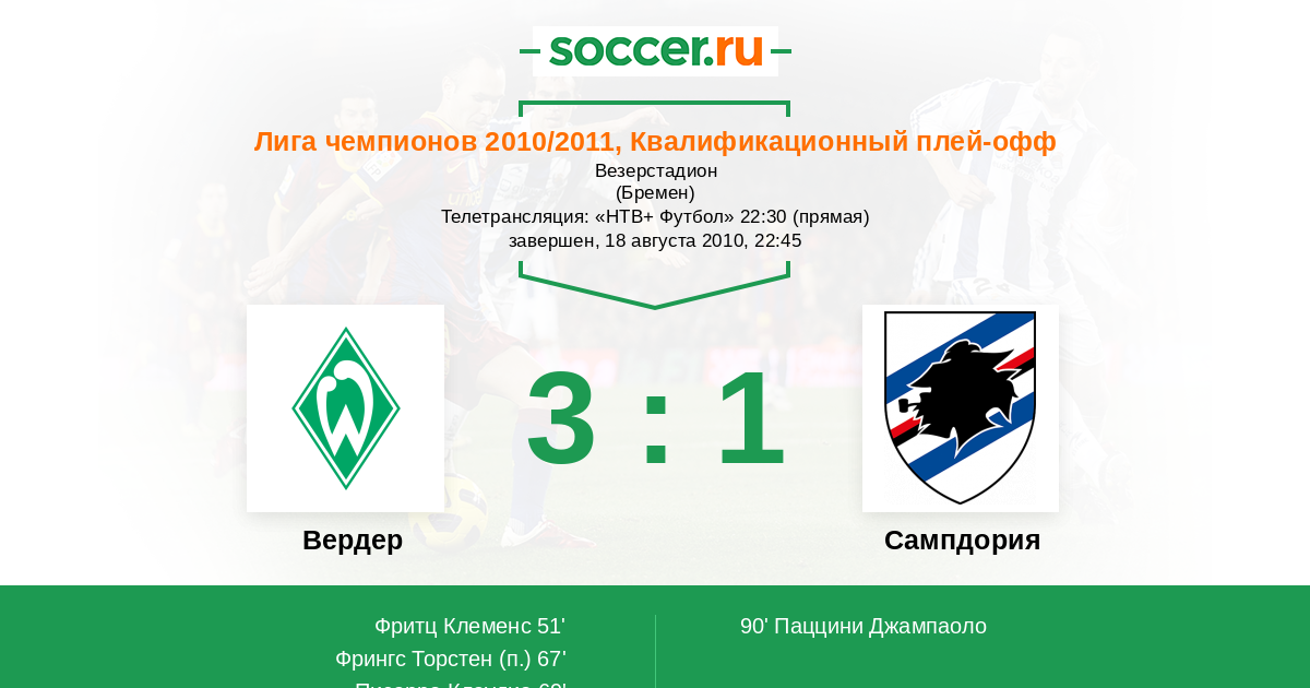 Протокол матча Вердер против Сампдория
