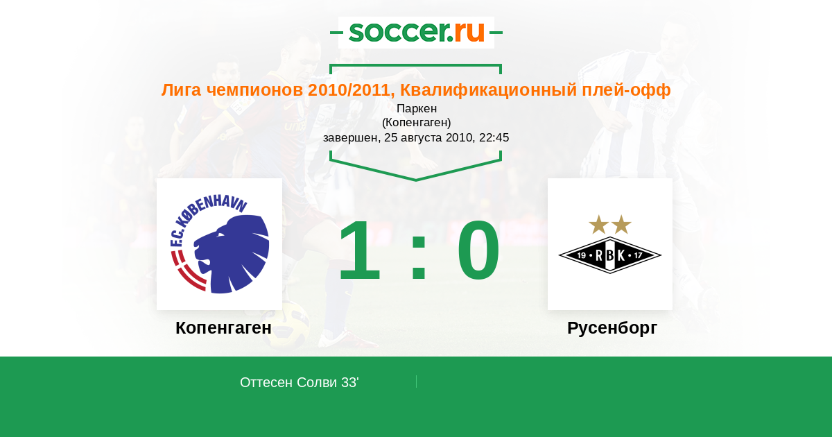 Протокол матча Копенгаген против Русенборг
