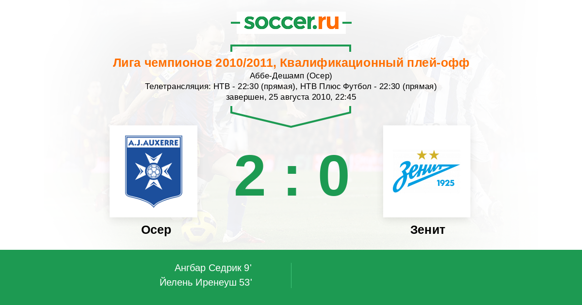 Протокол матча Осер против Зенит