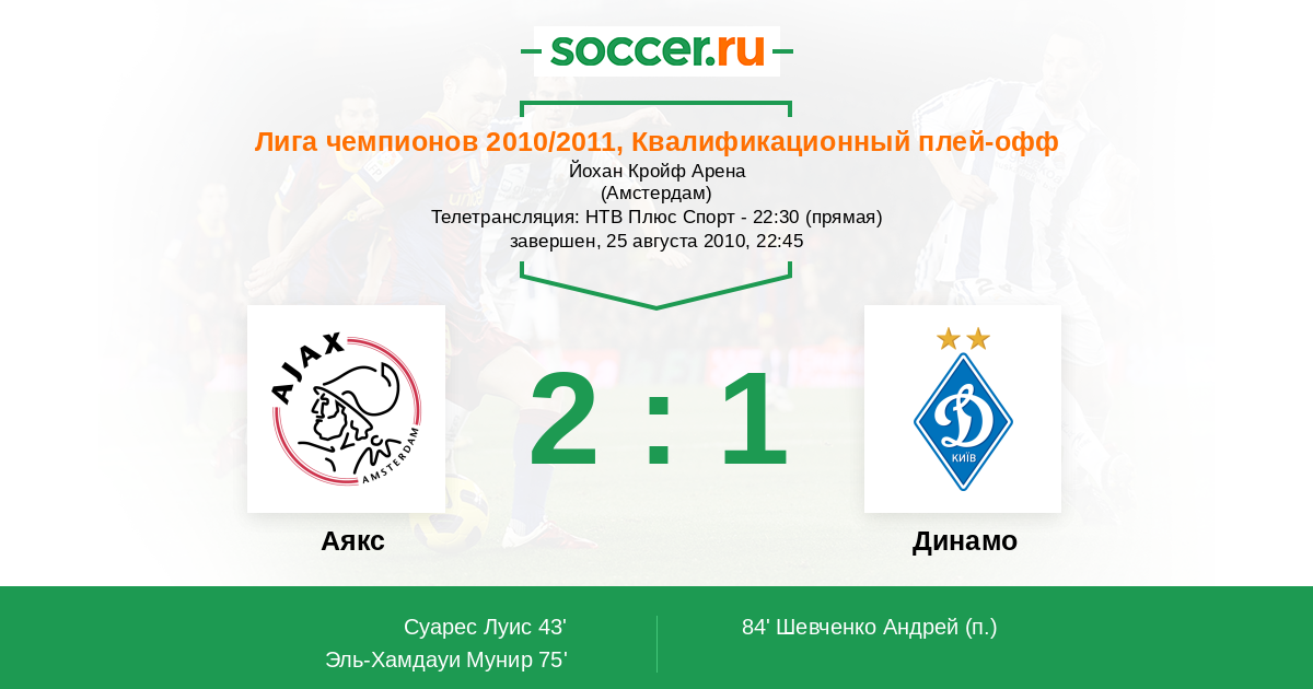Протокол матча Аякс против Динамо