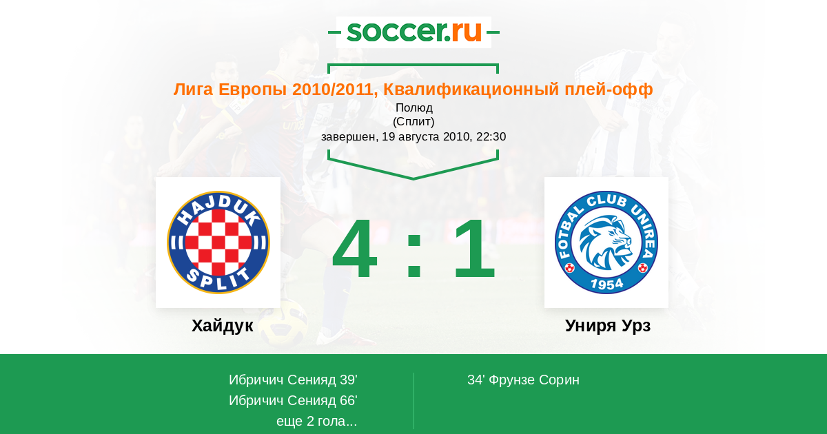 Протокол матча Хайдук против Униря Урз