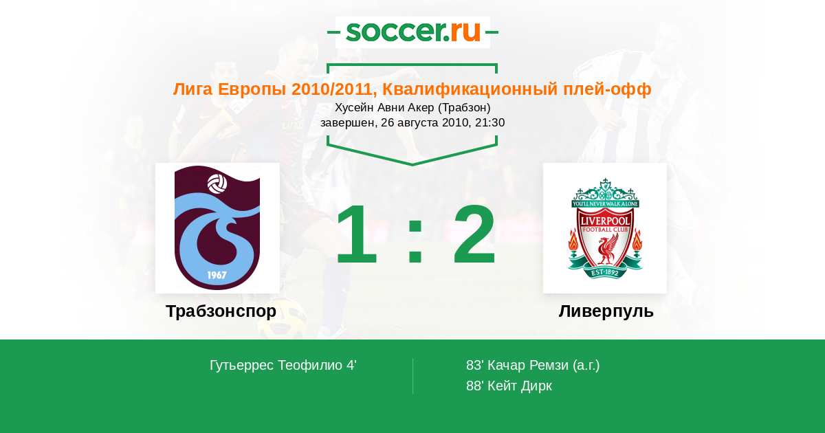 Протокол матча Трабзонспор против Ливерпуль